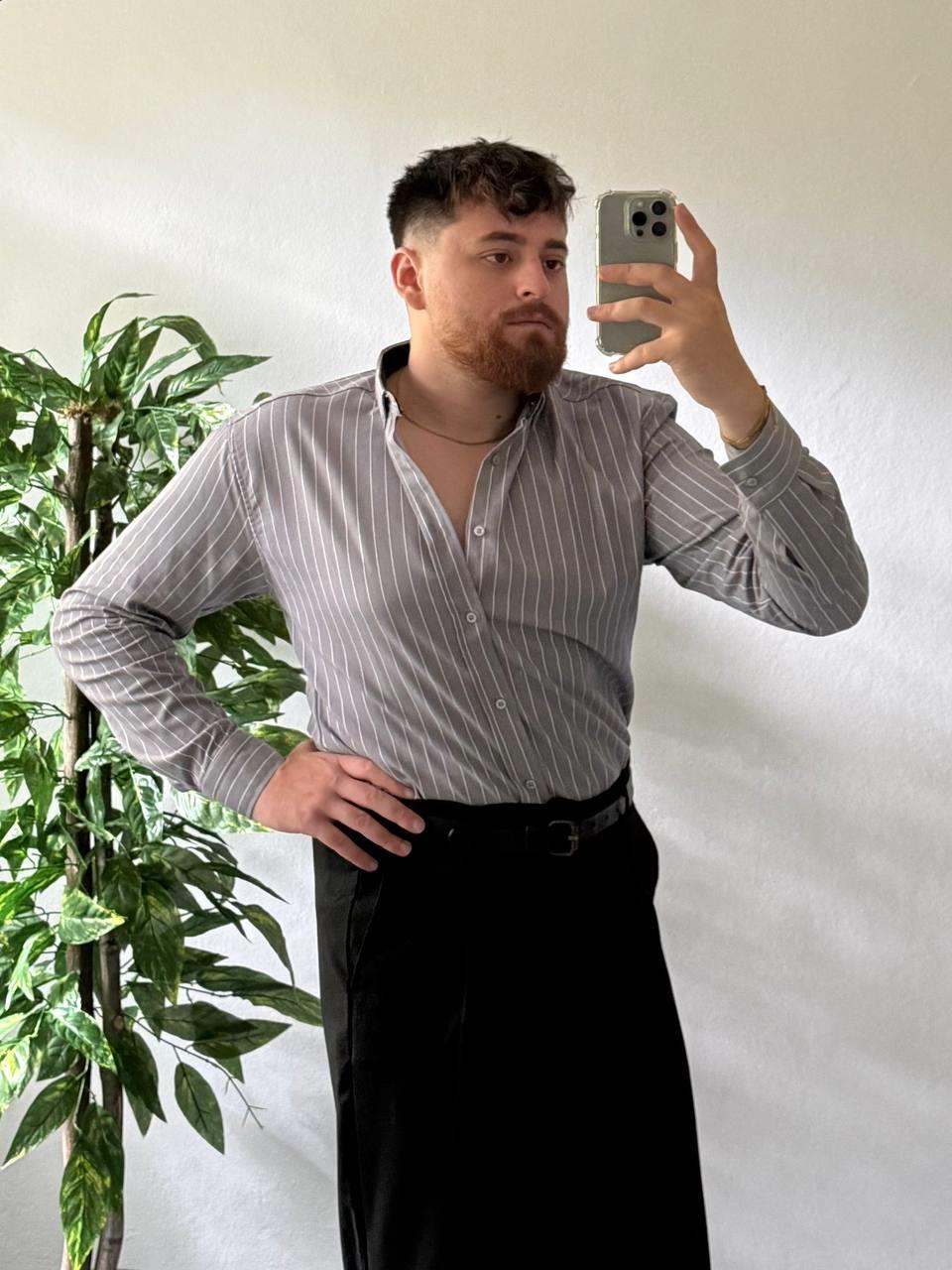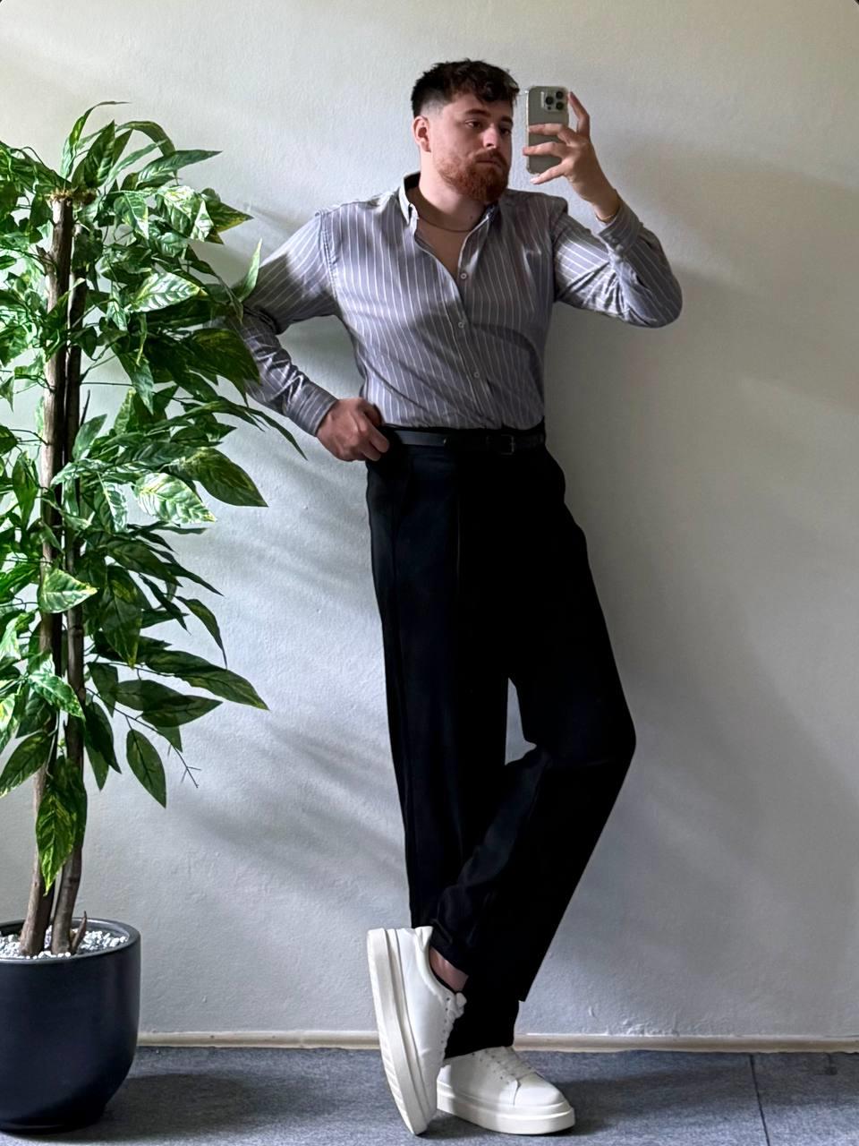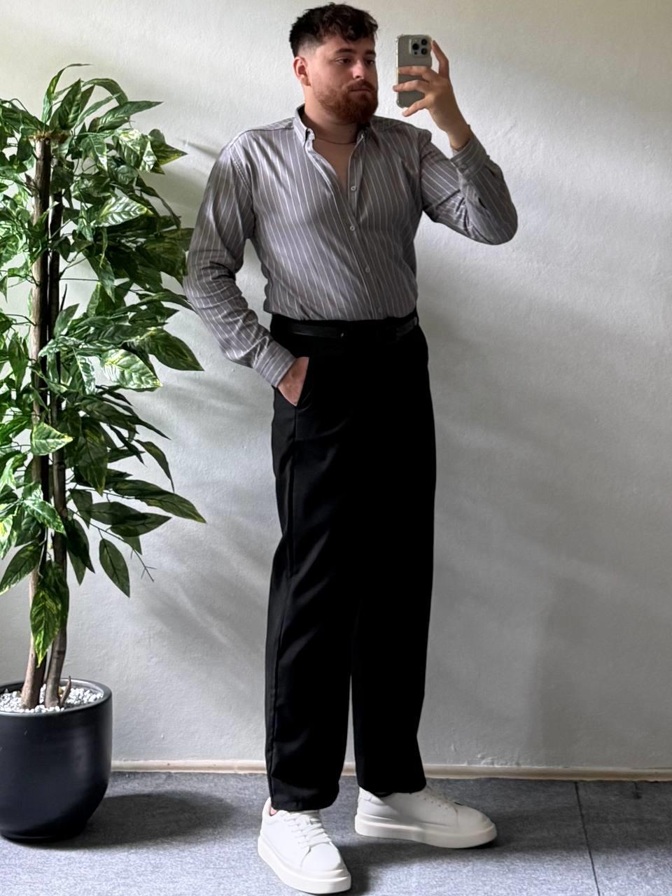 Gri Beyaz Çizgili Modal Kumaş Gömlek